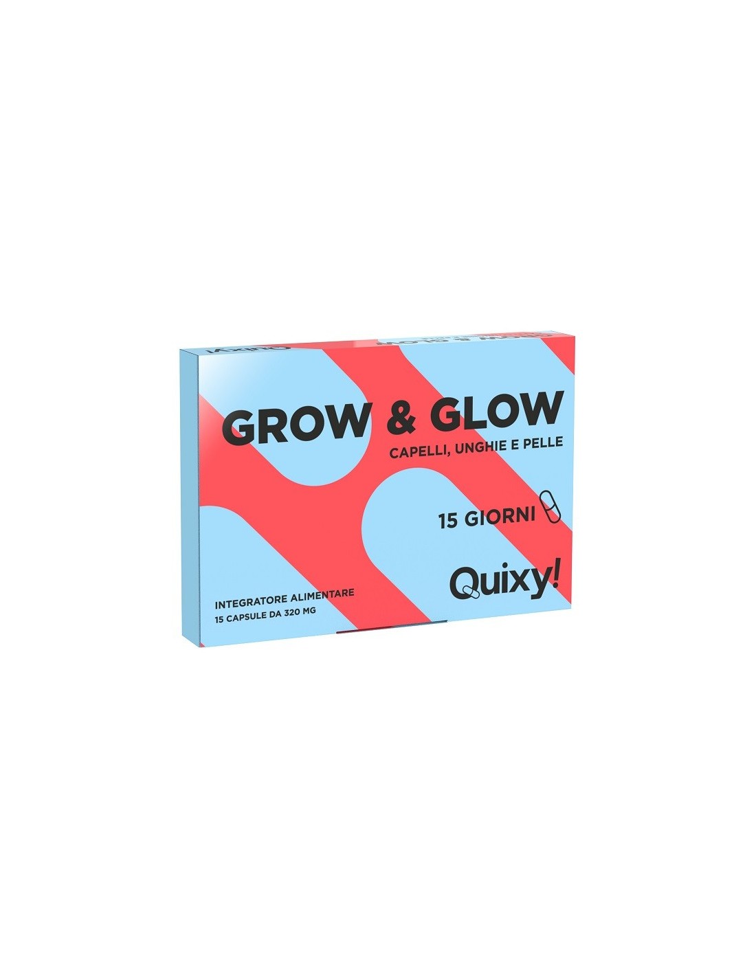 Quixy GROW GLOW Descrizione Integratore alimentare di L metionina. minerali. vitamine e DMAE. Vitamina C contribuisce alla normale formazione del...