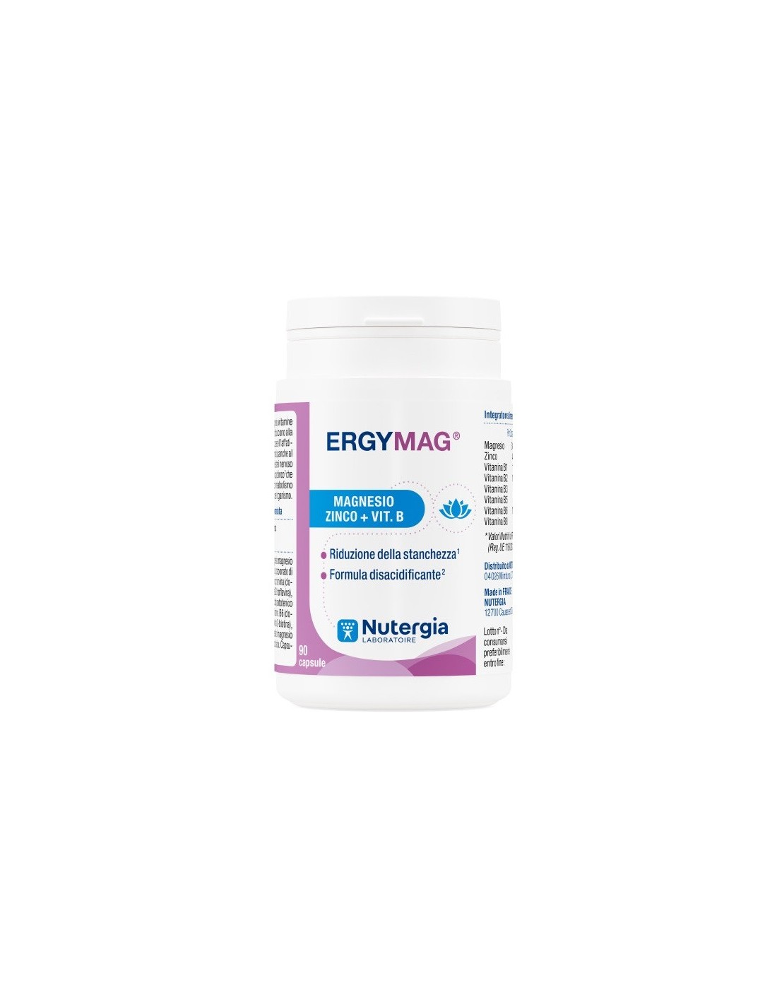 ERGYMAG Descrizione Integratore ricco di magnesio. vitamine B2. B3. B5 e B6 1 che contribuiscono alla riduzione della stanchezza e dell’affatica...