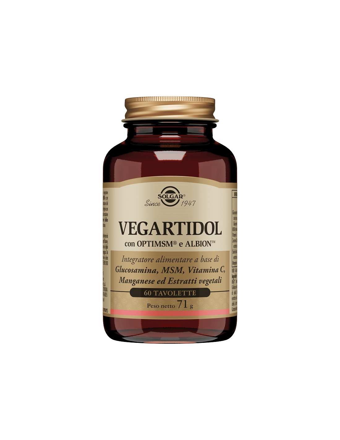 VEGARTIDOL Descrizione Integratore alimentare che fornisce glucosamina e metilsulfonilmetano MSM . costituenti del tessuto cartilagineo articolare...