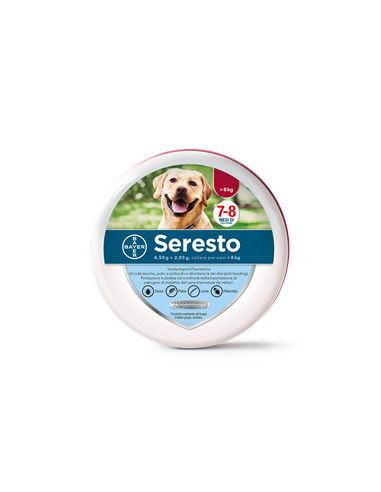 Il prodotto fa per 8 mesi una persistente efficacia acaricida (abbattente) contro leinfestazioni da zecche (Ixodes ricinus, Rhipicephalus sanguineus, Dermacentorreticulatus) e un'efficacia repellente (anti-feeding) contro le infestazioni da zecche(Ixodes ricinus, Rhipicephalus sanguineus).